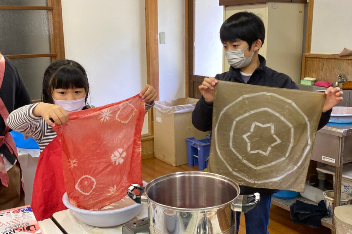 地元染色家の指導の下、植物を使った染物体験を楽しめます。