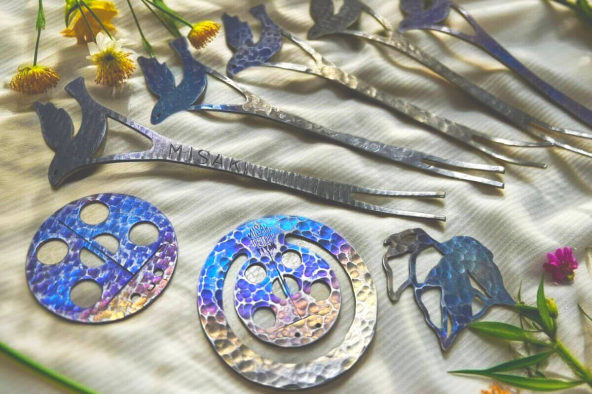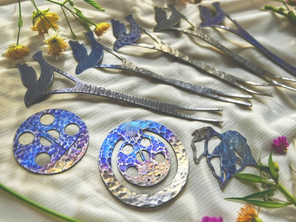 - 炙る: バーナーで炙ると、チタン特有の鮮やかな美しい焼き色が浮かび上がります。周りの花々に負けない、あなただけの色を見つけてください。