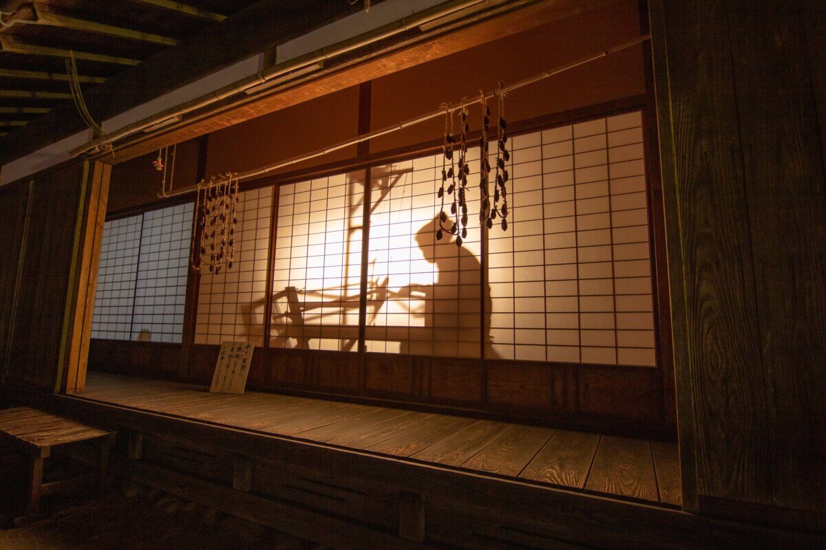 ※「機織り影絵(実演)」未開催日は、「障子影絵」を投影します